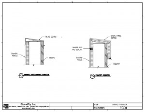 Details of parapet cap options. A metal cap or a fabricated StonePly cap.